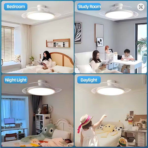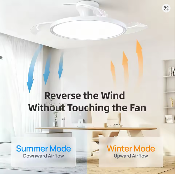 - Invisible Design: The fan blades tuck automatically and discreetly above the light when not in use.