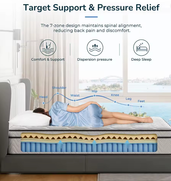 - Hybrid Design Excellence: This mattress combines supportive, individually pocketed springs (coils) that provide targeted support where you need it most with cushioning foam layers for enhanced comfort.